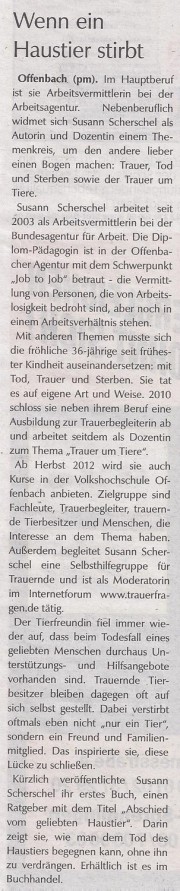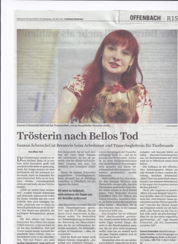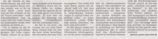 09.06.12: Artikel "Wenn ein Haustier stirbt" im BLITZTIP