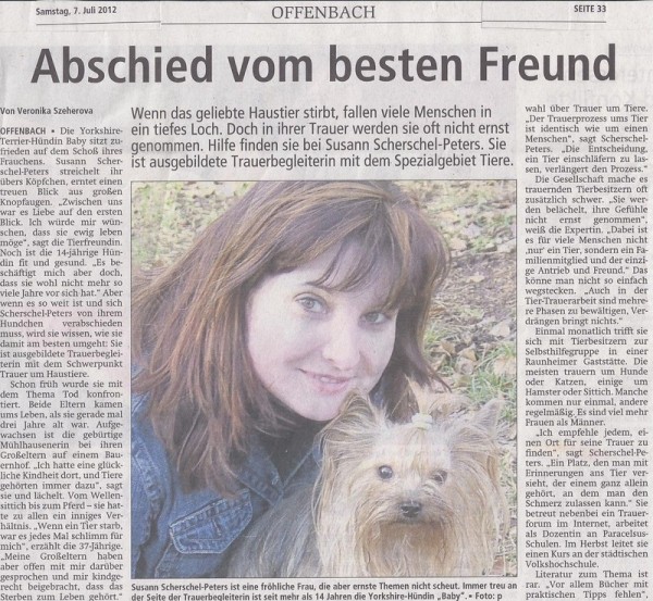 07.07.12: Artikel "Abschied vom besten Freund" in der OFFENBACH-POST